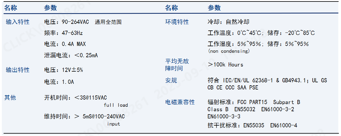 AC/DC 12W高性能适配器