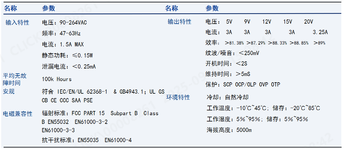 支持协议:Huawei FCP/SCP OPPO VOOC PPS TID:1060042(PD3.0)/89(PPS) MTK PE2.0/PE1.0 Apple/Samsung