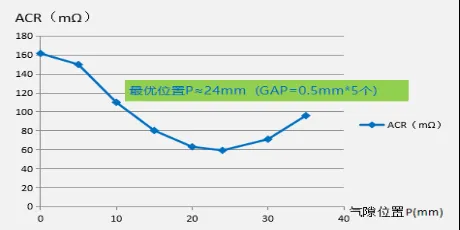 经反复探究,发现U型转折尺寸为24毫米时损耗达到最优状态。基于此,对相关数据进行总结,梳理出气隙分段的段数、最优气隙大小与 ACR 值之间的关系。